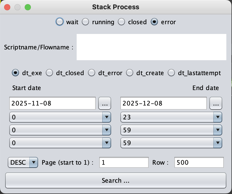Select the process step, enter all filter information, and click on search button...