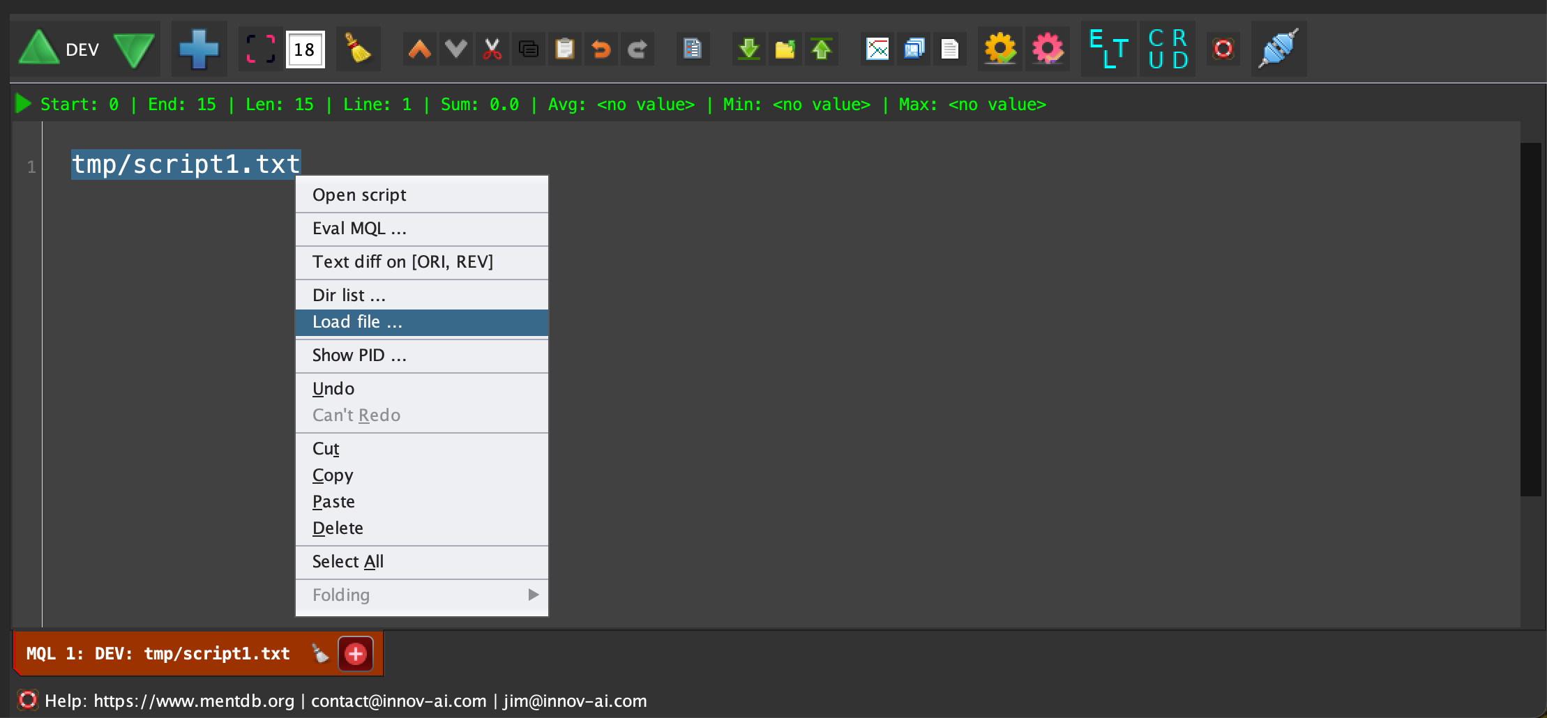 script merge "folder.folder.your_script_name.exe" true 1 (param (var "[v1]" {true} "description ..." is_null:true is_empty:true "10") (var "[v2]" {type is_double [v2]} "description ..." is_null:true is_empty:true "20") ;) "addition ..." { log write "My message ..." OK "cmd" 425; + [v1] [v2]; } "Return ...";