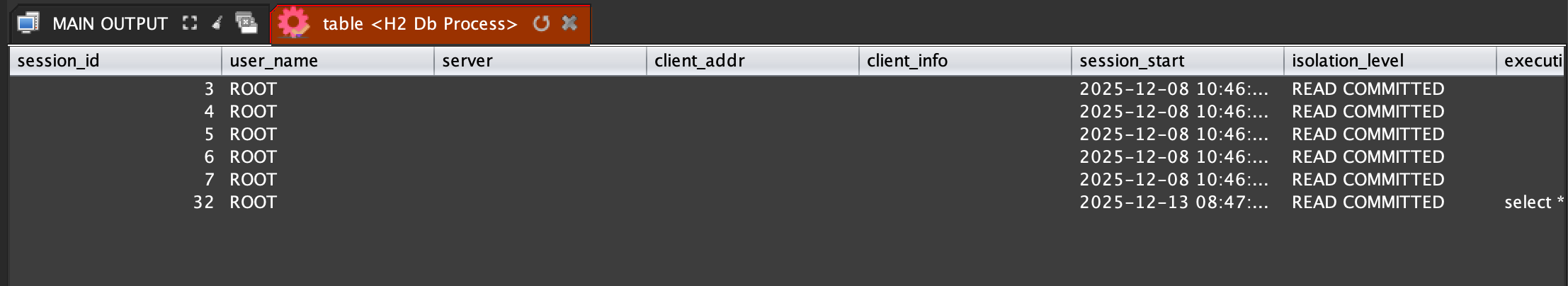 To refresh the database process ouput (H2 or MySQL) click on this :