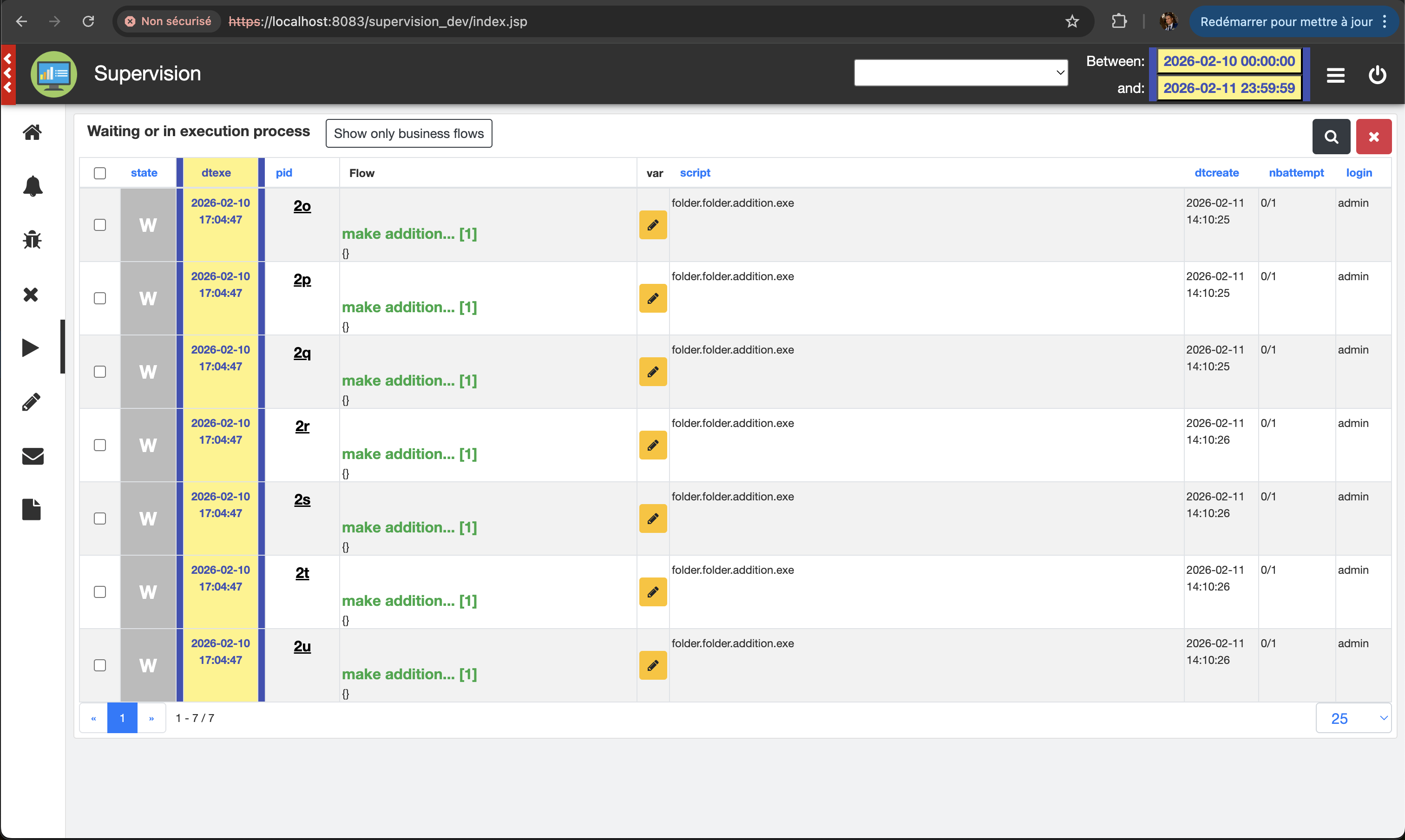 Connect to the application: https://localhost:8083/supervision_dev, and open the waiting (or in execution) process page (menu on the left)