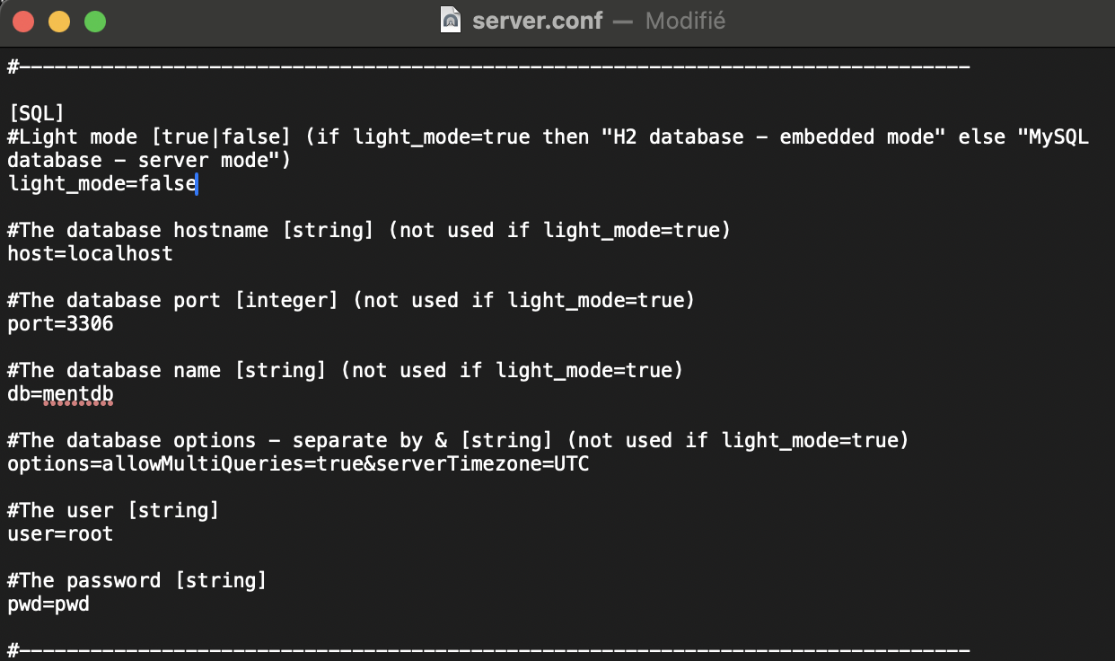 - If light_mode=true then "H2 database - embedded mode" else "MySQL database - server mode"
