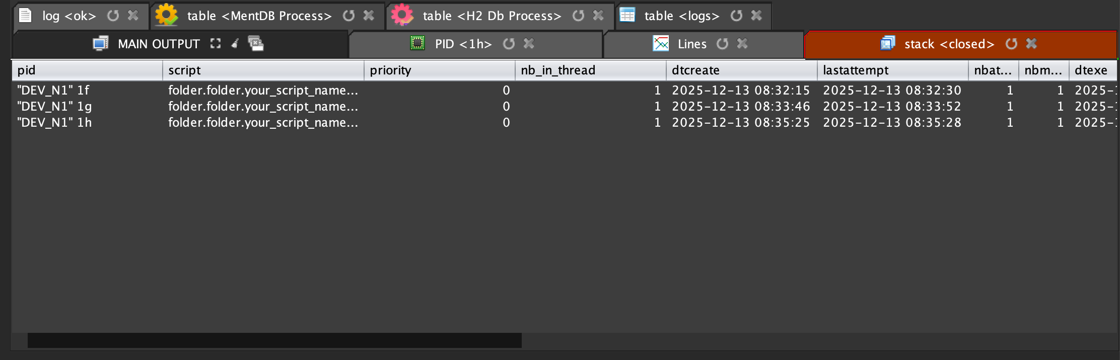 To refresh the stack wait/running/closed/error ouput click on this :