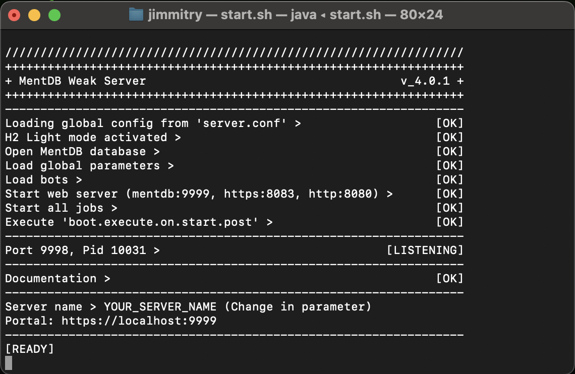 > Start the server > (or start the server for the first time (embedded mode - H2 Database)) > (or start the server for the first time (remote mode - MySQL 8 Database)) > Open the MentDB Weak Editor